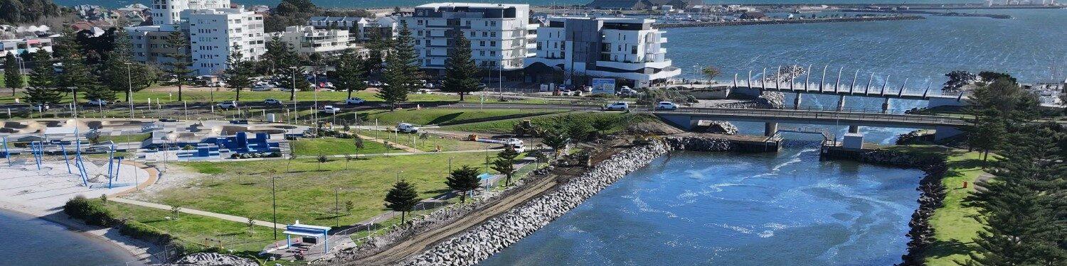 The City of Bunbury, in partnership with Department of Transport, is carrying out upgrades to critical coastal protection infrastructure at Koombana Bay and the Leschenault Inlet.